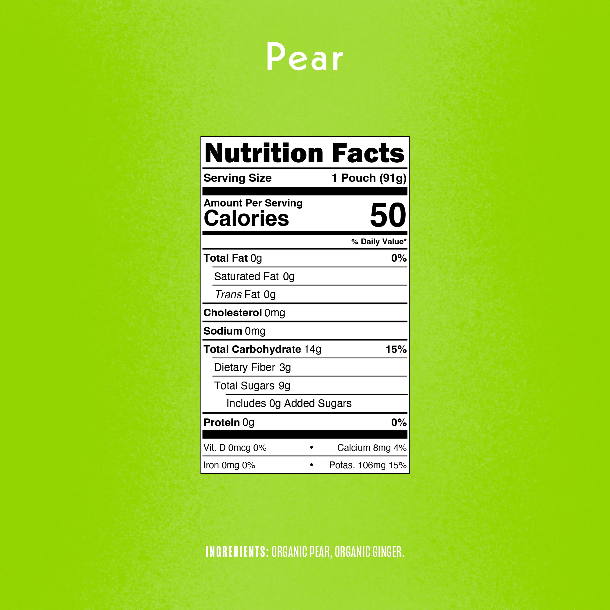 Pear with Ginger: Organic Pear, Organic Ginger.